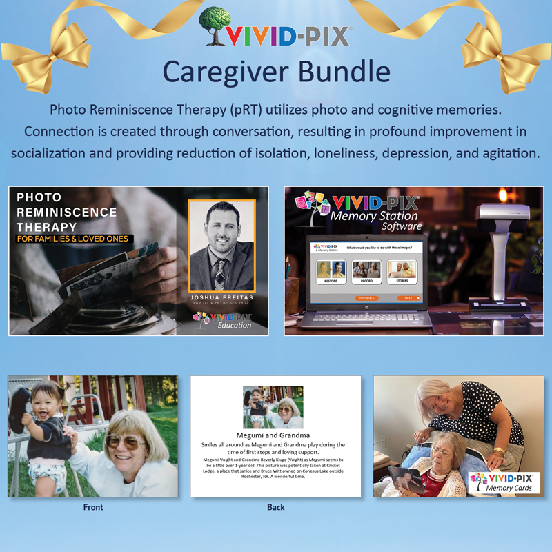 The Caregiver Bundle Gift Card includes: 1. Memory Station Home Edition Software 2. Photo Reminiscence Therapy for Families course 3. A prepaid coupon for 10 Memory Cards